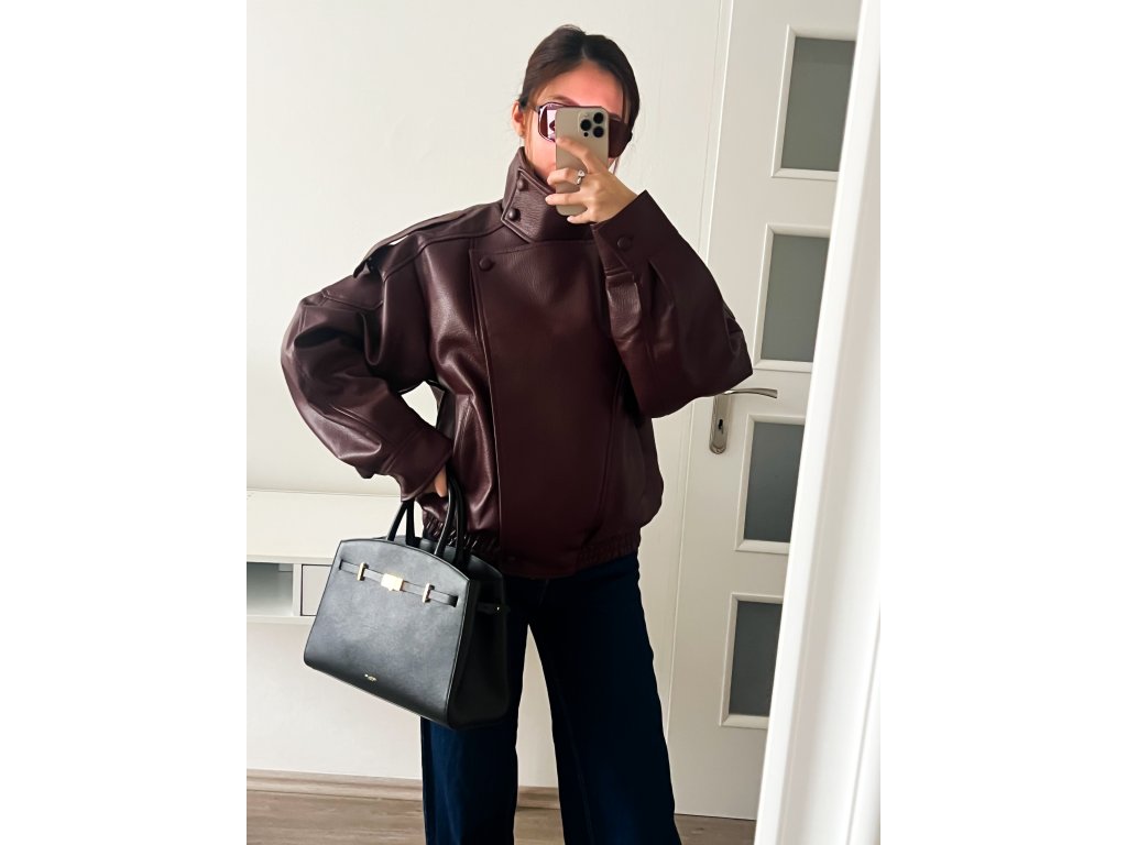 🖤 Koženková oversized bunda s vysokým stojáčkem