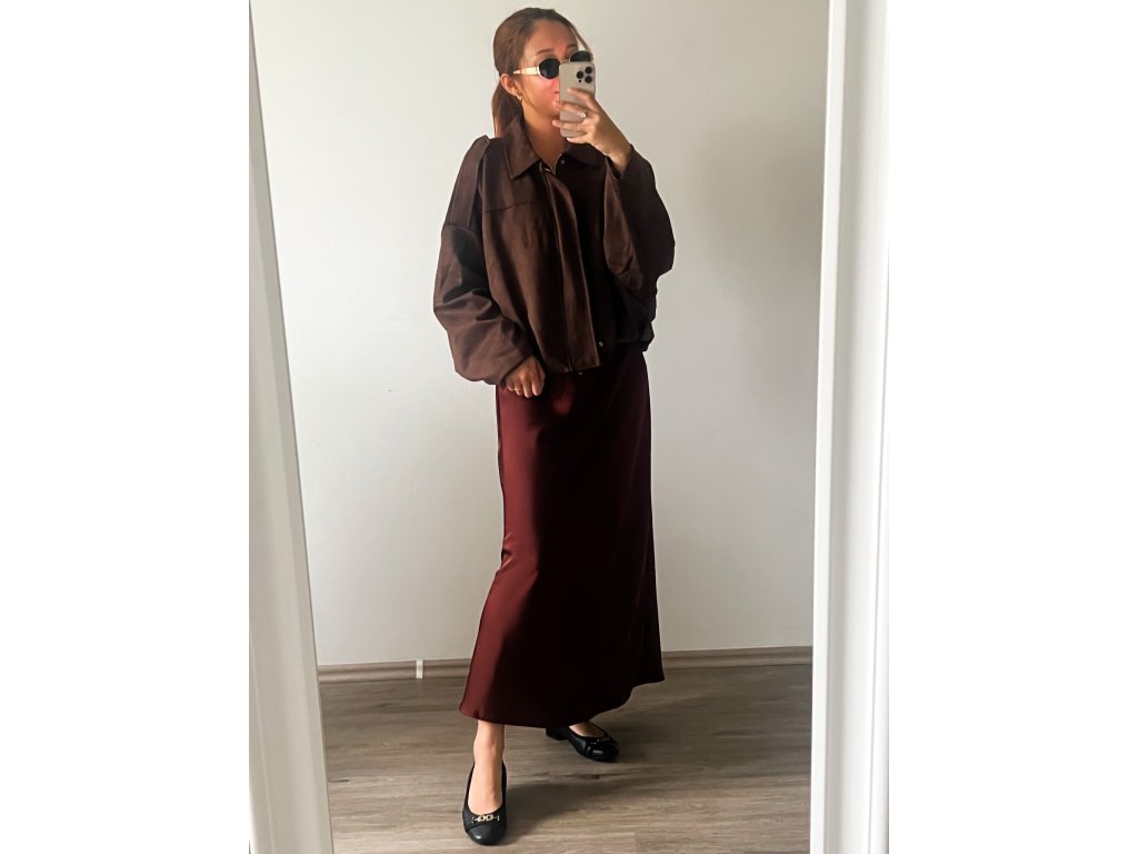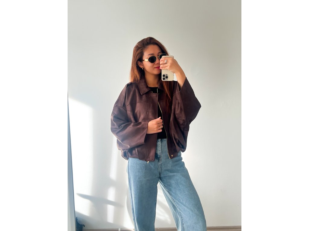 🤎 Semišová oversized bunda v barvě Coffee Brown je must-have pro podzimní outfity. Perfektní k džínům i šatům – prostě must-have pro tenhle podzim 🍂