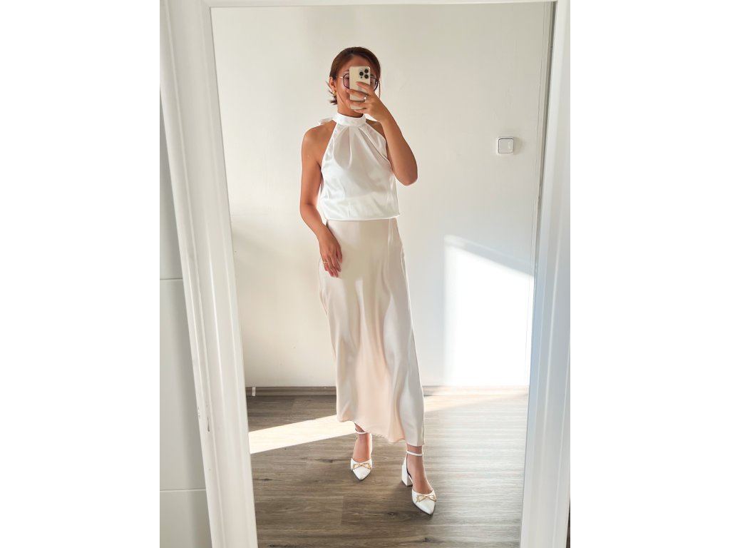 Elegantní saténová sukně v oblíbené midi délce, která lichotí každé postavě.